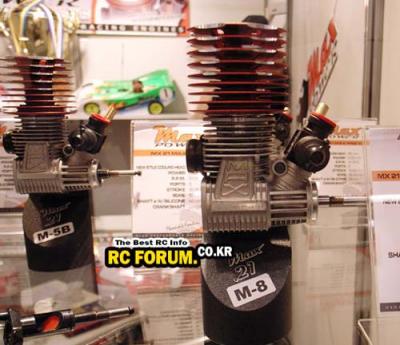 This engine above with the M-8 under it is the latest hand tuned 9 port high end motor from Max Power. The engine has ceramic bearings throughout as well as hardened crankshaft and the usual hand work that Massimo Fantini does to his signature Novarossi engines.