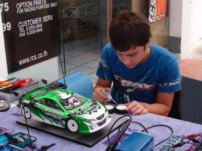 With the IFMAR 1:10 Electric Onroad World Championships less than a month away many of the leading manufacturers have been conducting private testing at the RCS track in Thailand as they make final preparations for the bi-annual event. At last weekend’s Euro Touring Series race in German we spoke with former European Champion Ronald Volker who had just returned from a successful test in Bangkok while Pre-Worlds winner Viktor Wilck and team-mates Jilles Groskamp & Marc Rheinard told us they had just a few days to get ready before flying out to Asia together with Tamiya’s engineers to test new parts for the TRF416. The other big title challenger, Xray, was also in Bangkok this week but appeared to want to keep their WC challenger out of the public eye. Our sources in Thailand have told us that both Teemu Leino and Alex Hagberg’s cars were fitted with a number of new prototype parts which we understand are for a new car which is rumoured to be released by the Slovakian company ahead of the 2009 season. Juraj Hudy, who is the creative genius behind all Xray cars, together with Martin Hudy were on hand to support Leino & Hagberg at the test and according to our source they did not want the new parts (car?) to be seen with both drivers keeping their cars well covered up at all time. Red RC will be travelling to Thailand to bring you full coverage of the World Championships where a certain Mr. Hara could make history by adding to the 1:8 Buggy World title he won last month in the US.