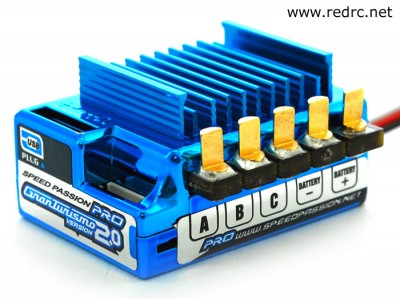 Following on from our exclusive snaps of the new Gran Turismo 2.0 Pro speed controller taken at the ETS round in Poland, Speed Passion have released final information and pictures of the new Blue Star edition ESC. Also available in carbon colour the new Pro features version 2 of the company’s Digital Racing Response System, which allows you to adjust very accurately the punch out of the motor, and is suitable for all racing classes, from 1/12th to Touring Mod and Stock as well as 1/10th off road. A maximum power output of 800A, the Pro can support up to 2.5T motors on 6 cells. It also includes 3 programmable setting profiles, which can be programmed and saved using the supplied programming box.