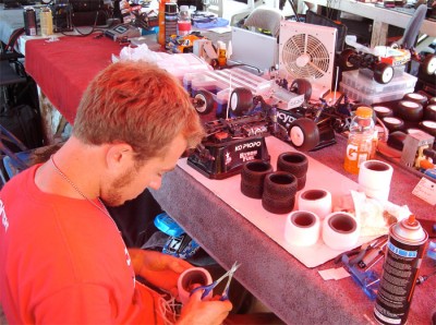 Kyosho Driver Jared Tebo was paired up with Rookie Driver Brian Mowry. After the two drivers met for the first time Jared walked back with Brian and noticed he was pitting by himself without and EZ up or any shade. With scorching temperatures predicted all weekend long, Jared made room for his partner under the Kyosho tent. This is just one of many great things about Jared and why he is so well liked at the track. Brian was able to pit like a Pro and have full access to Jared and Team Kyosho. With all the points added up at the end of the weekend, Jared and Brian finished first in the RC Pro/Am Challenge.