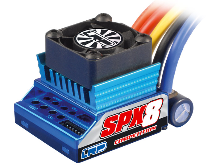 More news from LRP who have released their new 1/8 Brushless System. The new Vector8 brushless modified motor is based on the IFMAR World Championship winning XTEC X12 brushless modified technology. This motor is specifically tailored for 1/8 Off Road racing with its longer teardown with special cooling fins, longer stack, magnet and shaft for higher torque and maximum performance. To control that motor, LRP release the new SPX8 Competition brushless speedo which is based on one of the most successful competition speed controllers, the Sphere Competition TC-Spec. It now features a special 1/8 software and has especially been optimised for the use with 2S-4S LiPo batteries. The result is a high-end speed control that will enthuse the 1/8 electric R/C car scene.