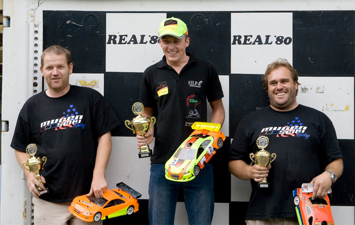 Round 4 of the Dutch 1/10th scale 200mm Nationals took place last weekend at the Groningen track, in the very North of the country. Qualifying for the NK class went the way of the winner of the previous 2 rounds Pedro Rombouts, with Maarten van Lierop, Daan Jacobs and Sander Borghoff completing the top 4. The Nomac class saw the TQ go to Marc Meijer while in the 1/8th Promo series it was Luigi Pili on top. At the beginning of the NK final Pedro lost the lead and saw Maarten take the lead, a place he held until close to the end of the race. With the top 3 of van Lierop, Jacobs and Rombouts running only meters apart with 8 minutes to go, Pedro made a mistake, but then Daan would have tire problems, something Maarten would also suffer from. With 2 laps to go Maarten had a collision with a back marker and lost the lead to Pedro, who would cruise the final lap to take his 3rd win in a row. Maarten van Lierop would hold onto 2nd with Jurgen Geerligs taking 3rd spot away from Jacobs. The Nomac class was won by Davy Geraets from Theun Zoethout in 2nd and Michael Behnert in 3rd, while the Promo series win went the way of pole man Luigi Pili, with Ron Veger taking 2nd and Alfred van Dijk 3rd.