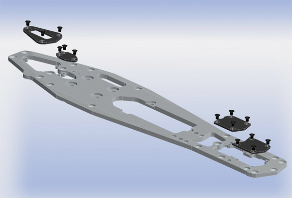 F.V.S.S. Racing Team have released a new optional V.H.C. (variable hardness chassis-plate) chassis plate for Mugen MRX4-X. Made from 5mm high quality Ergal 7075 T6 aluminium, they have delrin inserts, which are harder and more durable than carbon fibre, to enable you to stiffen or soften up to chassis plate. In the next few months F.V.S.S. will also release new V.H.C. chassis plates for more popular car kits in 1/10 an 1/8 nitro scale.
