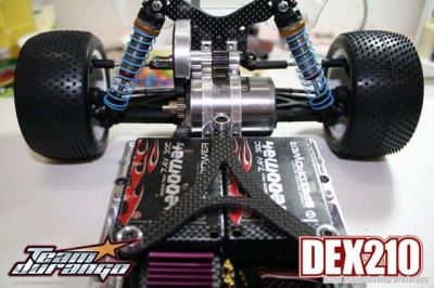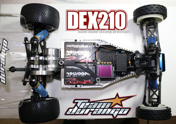 Durango have taken the covers of their new 2wd prototype buggy, the DEX210, which will be raced at the “Petit” event in Kent this weekend. The thinking behind the DEX210 is to be the first car where mid & rear motor mounting is possible from the same car, ensuring Durango owners can be have the ideal layout whatever the track. Private testing has already been carried out with various gearbox configurations & motor locations, but as always Durango like to test properly before finalising the design so off to the Petit race Gerd goes with his hand made car.