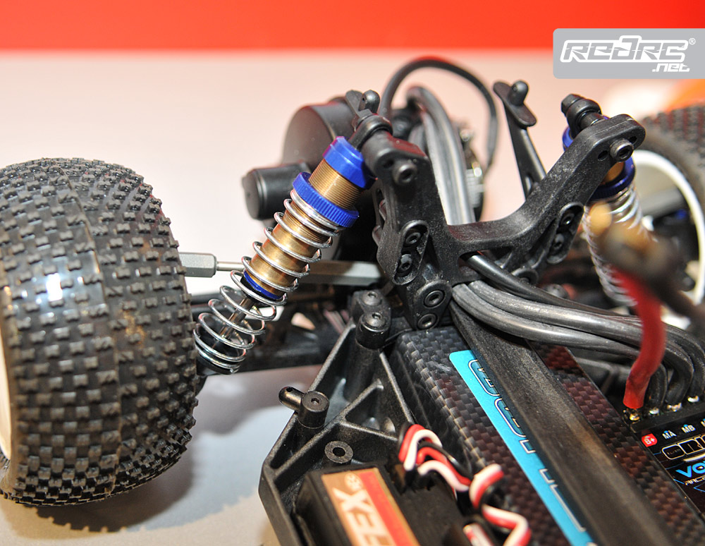 New from Kyosho is their 190mm competition touring car, which we have seen in various stages of development over the past few years. Called the TF6, everything is more centralized on the car and it is LiPo ready and more durable than the previous car with stronger rear drive cups. The front drive system, which we got the first view of at the DHI Cup, uses steel balls to provide forward drive between the drive cup and front drive shaft yet wont bind under suspension compression. The car is set to be released in May.