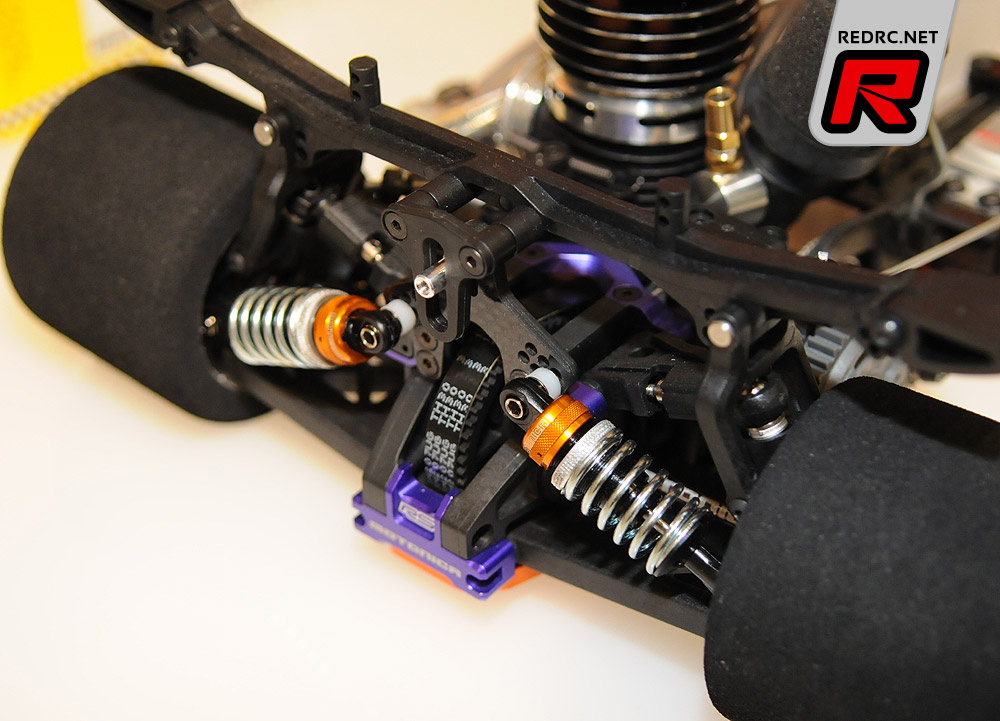 Taking up the majority of the stand, Motonica have their all new P81RS 1/8th scale 4wd chassis on show. The new RS has improvements to the shock absorbers, new special steel drive shafts, the same as used for the outdrives and an all new 2-speed gearbox for better power delivery. They have used aluminium in place of plastic in areas that require extra stiffness and most noticeable is the new purple and orange anodising. The P81 Electron is the company’s electric brushless powered version of the P81RS and apart from the new radio plate and power unit configuration is basically the same car.