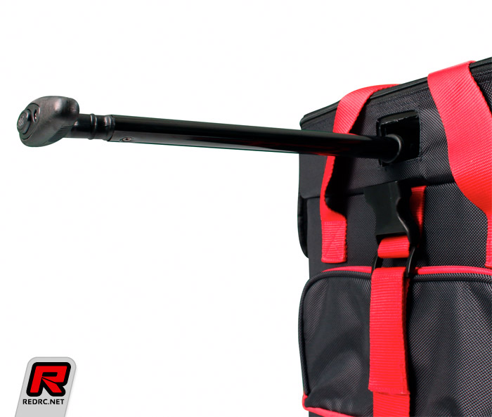 The new Venom Transporter race case has a bold new look. Now available in black with Venom red accents to help keep all of your track supplies organized and close at hand on race day. This case has integrated wheels and an extendable tow handle for easy maneuvering. The top portion of the case has a built-in tool organizer and parts tray, while inside you’ll find five oversized drawers. The lower four drawers are perfect for storing transmitters and spare parts. The oversized upper drawer will hold models up to 1/8th scale buggy size.