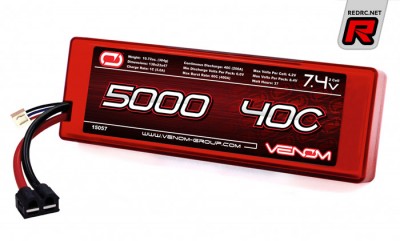 The latest addition to Venom’s already extensive line up of 3-Cell car packs is the new 50C 11.1v 5000mah which is sure to impress even the most seasoned driver. This 3-Cell LiPo comes standard with 12AWG silicone wire leads and a pre-installed Venom Universal Plug System, which makes going from the bench to the track time minimal.