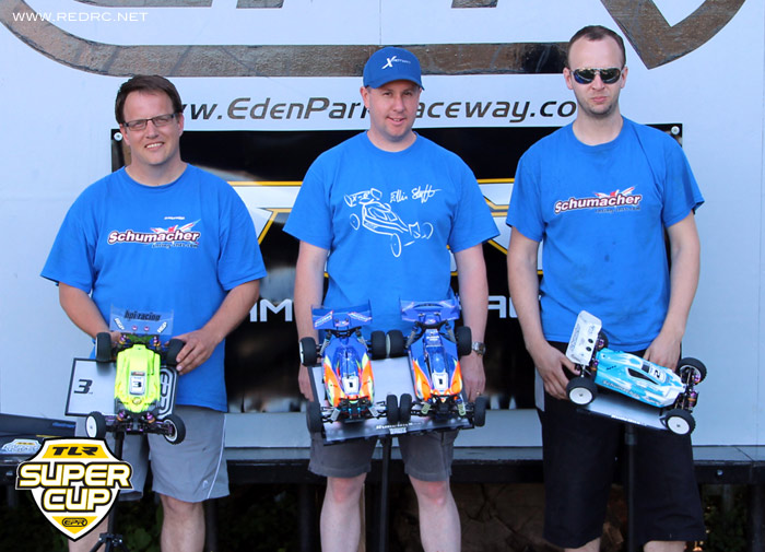 Come the finals, Ellis broke out from pole in leg one of the 4WD finals allowing Danny to take the win relatively comfortably ahead of team-mate Nathan Ralls and Matt Benfield in 3rd but in leg two, he had no misfortune and took the win with the TQ setting 511 ahead of Nathan and Danny to set up an exciting 3rd leg scenario with potentially any one of the three of them able to win the meeting. In the end, Ellis did what he does best and got his head down and drove off into the distance, this time with a Kyosho to secure the first ever TLR SuperCup 4WD title.