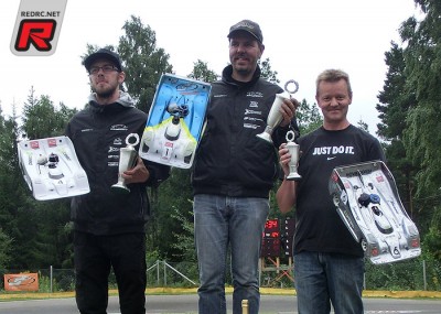Sunday brought a change in the weather and the level of traction as it rained. But the drivers had enough time to prepare for the new conditions with tires, engines etc. Come finale time, Markus Hellquist was not able to make use of his TQ spot as Per-Ola Hard took the race win in front of Mikael Fransson, Tomas Andersson, Serpent 733, Staffan Karlsson and Markus Hellquist (all Serpent 733). In 1/8 scale Mikael Fransson (Serpent) was able to secure himself the championship with Marcus Linder (Serpent) and Bjorn Ohlsson (Mugen) completing the podium. Magnus Bengtsson (Mugen) went fourth with P-H Persson in fifth place.