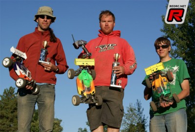 The Nitro Buggy class was as competitive as they come with some of the best names in the area competing for the top spot. Leading the way was Jeremy Whiting but an early bobble gave the lead to second qualifier Jeff Stanford who would lead the first two laps and then have problems of his own forcing him to pull the buggy. Giving the lead back to Whiting with a hard charging Taylor Timmerman bumping up from the B Main in second. Another bobble from Whiting gave the lead to Timmerman who looked to have this race under control, but another late charge from Jeremy Whiting put him in the lead with just 2 laps remaining and Whiting was able to hold on for the win in the Buggy class with Timmerman coming in second place and Greg Baumel in third.
