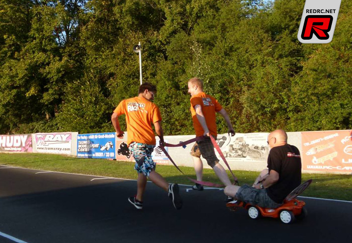 A total of 72 racers joined the one-event German Nationals at Kirchhain and the local club made it a happening to enjoy over the four days: nice track, good grip, perfect organisation, precise technical control, no group changes, no transmitter impound, no tickets, good food, good atmosphere – that´s the way it should be. Even the weather was excellent for three days, unfortunately not at the end.