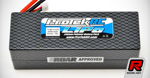 A Main Hobbies’ brand ProTek R/C have announced four new LiPo battery packs that boast an incredible 70C discharge rating. These ROAR Approved packs are available as 2S 6400mAh, 2S Shorty 4100mAh, 4S 6400mAh and 1S 5800mAh versions all with hard cases. ProTek RC offers a 50% Damage Replacement program for one year after original purchase date on all batteries that have been damaged due to impact, over-discharging, or improper charging that have not been modified or disassembled. The damaged battery will be replaced by a comparable battery at 50% off of its retail cost.