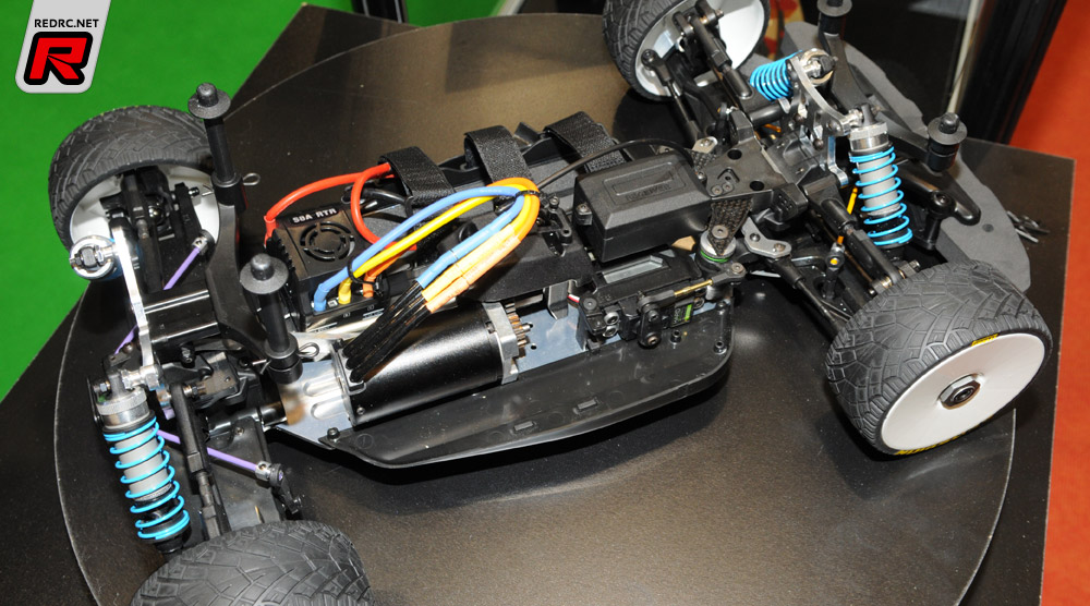 Team Magic have their all new 190mm electric touring car on display here on their distributors stand. A more standard configuration compared to previous versions we got shown the full option E4 RS II. The car will come supplied with rear gear diff and has a narrow chassis and dual pivot steering system. Team Magic also have a new EP powered 1/8th scale GT car called the B8 EP, which is still in prototype form and is designed to handle up to 4S LiPo packs. Finally there is the E4D MF drift car that is a front motor 4wd car that will be available as a conversion set for the E4 car and will be available at the end of the year.