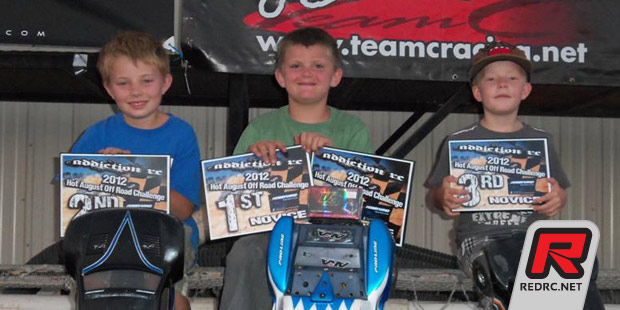 Addiction RC, located in Ogden Utah, hosted the first annual Hot August Offroad Challenge. Under the clear skies of Utah, racers gathered in 100 degree weather to take place in this event. The track was a smooth high speed layout, with tire eating traction. In Stock buggy finishing in 3rd place was Bryan Martinez running his Team C Evo buggy. 2nd place went to Nathan Empie (Team C) with Brandon Twitchell finish 1st with his B4.1 buggy. In 13.5 Stock 4×4 buggy drivers struggled to keep temps down in their cars. In the end Brian Schow took home 3rd place, with Tony Weaver finishing 2nd. Marvin Flores and his XXX-4 would take home TQ and 1st place.