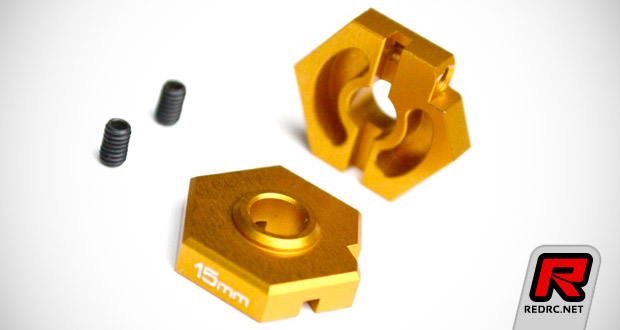 Exotek have released this heavy duty CNC machined gear cover for the DEX210, DEST210 and DESC210. The cover allows larger pinion area for stock class racing, allowing up to 37 tooth 48 pitch pinions. Aids in cooling the motor by adding more surface area to the motor mount while a slotted bottom screw mounting allows for easier removal from mid motor configuration. Exotek have also produced a pair of precision 15mm alloy hex adapters for the DESC210 or DESC410. A special design uses a set screw to lock the pesky axle pins in place for worry free wheel changes.