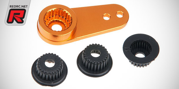 New from RT come three aluminium servo arms for the use with most 1/8th and 1/10th cars, buggies and trucks. The arms are CNC-machined from high-quality aluminium and come as clamp-type steering, standard type single armĀ and ‘throttle’ dual arm variant. The clamp-type arm comes made for 25T splines while the two other arms include 23T, 24T and 25T inserts to fit virtually all servos on the market.