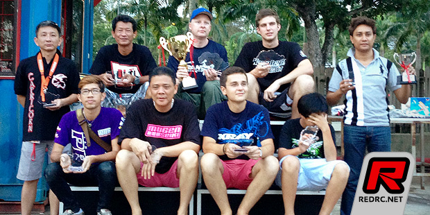 Alexander Hagberg TQ’d the 1/10th scale and almost took the TQ in the 1/8th class as well. If Alex had had more time to get his prototype Orcan 9-port .21 engine ready for the 25% fuel and hot weather, he very well could have TQ’d 1/8th. Instead, and not surprisingly, the 1/8th TQ honours went to a much deserving Khamil Hyder. Khamil was racing Lamberto Collari prepped car and in the hands of Khamil, the car performed very well. The semifinals were rain affected and shortened to 20 minutes with the A mains being shortened to 35 minutes. This made tyre strategy important. Thailand’s Team PRC seemed fatigued after their busy racing schedule over the past two months. The top Thai drivers including World Champion 2013 driver Meen V. had lots of fun and put in very strong performances in various categories. Meen V. is reported to be so happy with his 1/8 KM car that he did not even use it for this race, to keep it ready for the WC, and instead was playing around with an older 1/8 Mugen just for the fun of it.