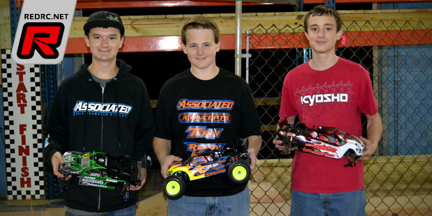 JConcepts team driver Riker Gatenby paced the 23 car field in qualifying of Pro Stock 2WD Buggy with a time of 15/5:09.925. Austin Craig and George Mercardo started and finished 1-2 of the C main for spots in the B. Gene Hickerson’s Intek led every lap of the B main with Kevin Abbott’s Losi taking the final bump for the showdown. The full field of 10 racers lined up for the 5 minute battle. At the tone, fellow JConcepts team driver Billy Bruce made the pass for the lead and stayed in the top spot for all of the 14 laps. Team Kyosho driver Landen Lewis followed his Kyosho teammate for a 1-2 finish. Jovan Cruz placed 3rd, Riker Gatenby 4th and Gene Hickerson 5th.