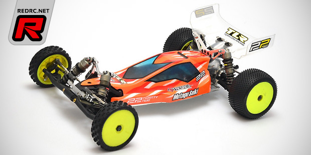 Japanese option parts wizards Motogo Seiki have released images of their TLR 22 based M22-S.A.C. mid motor buggy. The company that introduced a mid motor conversion kit for the Kyosho RB5 buggy some years ago developed a completely new transmission for the buggy with the main gear and slipper shaft being placed extremely low within the gearbox. The idler gear is made of a RB6 differential gear, from what we understand, and it drives the standard 22 ball differential meaning the unit is of a 3-gear design over the standard 4-gear mid motor gearbox. The whole transmission case is machined from aluminium with the rear shock tower sitting almost in “rear motor” position allowing to place the rear wing above the rear A-arms for a more compact appearance of the buggy.