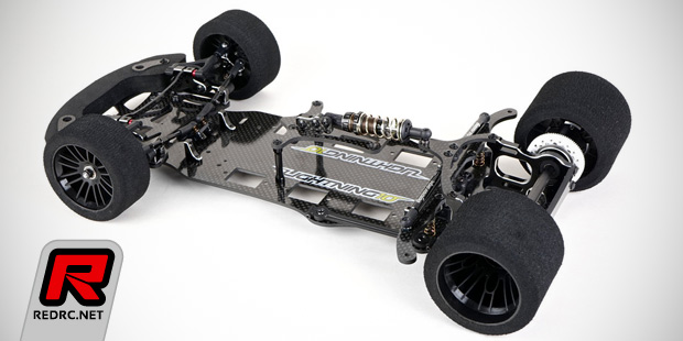 Following first teaser renderings VBC Racing now officially introduce the Lightning10 200mm World GT pan car kit. Based on a 2.5mm carbon fibre chassis the car offers a fully adjustable front end that allows for track width, caster, reactive caster and camber adjustments while two different servo mounts take standard or mini-size servos. The wheelbase is adjustable to suit US WGT or Europan pan car racing while special rear axle height adjusters make the usage of a wider range of tyre diameters possible. The suspension package is rounded out by dual roll dampers and two mounting positions for the side springs make adoption to various track conditions easy. The car can be run with shorty or 1S battery packs while chassis cut-outs allow the use of an optional brass weight system to fine-tune the balance. The car has already proven its performance by taking the win at the 2014 IIC in the hands of Max Kuenning and it becomes available by the beginning of November.