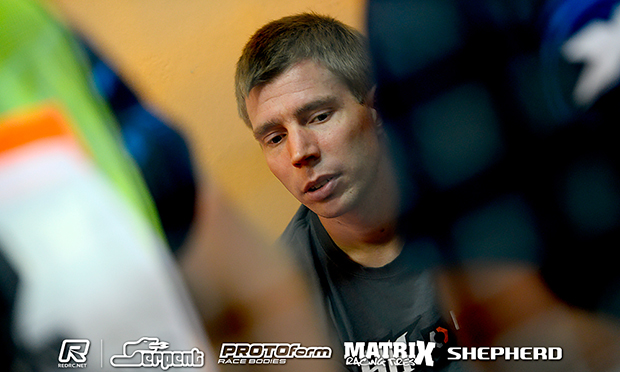 Albeit by just 0.004 of a second, Teemu Leino improved on his opening practice pace in the penultimate round to stay on top of the ranking ahead of Nicholas Lee and Dario Balestri. Running a 3-consecutive lap time of 42.326 in CP3, the Finn topped the round ahead of Serpent’s Mark Green and defending World Champion Meen Vejrak, both drivers also producing their best times so far. Overall the round made for little change at the top with Leino continuing to hold P1 from Nicholas Lee and Dario Balestri with Green the biggest mover, breaking into the Top 10 to go fourth overall.