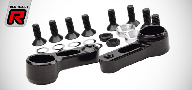 Team C introduce this aluminium steering arm kit for the TC10 and TR10 line of touring cars. Included are machined black anodised aluminium bellcranks for improved rigidity and durability resulting in a more crisp steering response and better crash durability. A supplied hardware set of shims, bushings and countersunk washers optimises the fit of all parts involved.