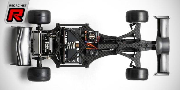 Following a first teaser image Yokomo now have revealed all details of their forthcoming YR-10 formula car kit. Developed especially for the ever growing 190mm rubber tyre class the car features a front suspension made of carbon fibre upper and lower arms combined with a standard kingpin and recoil spring setup as well as a split aluminium bulkhead that allows for a floating servo mount to produce smooth and consistent front chassis flex. The rear end features long side links and a large volume centre shock absorber to extract as much grip as possible from the rubber tyres. Large volume side dampers improve the side bite on throttle input and the kit will come race ready, complying with the ETS rules, including Ride XR tyres and Montech front and rear wings. Coming soon is also a Montech-made formula bodyshell.