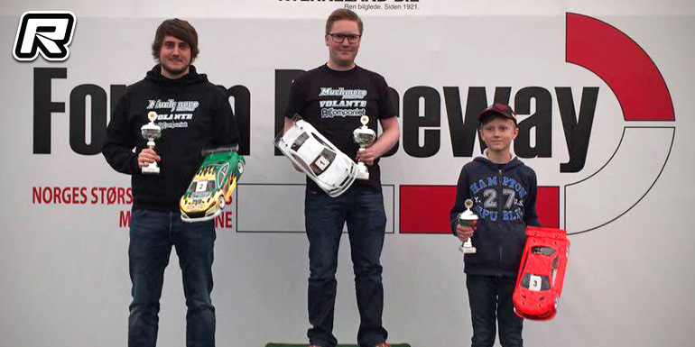 The first A-main was a tone to tone win for Nikolai with Helge in second and Svein third. The second main looked to be heading for a similar result, but Helge got by Nikolai after a small mistake and Nikolai started to hunt him down, but during an attempt to retake the lead the two touched sending Helge off the track damaging his car and forcing a retirement. During all this Andreas had managed to slip past Svein and the incident between Nikolai and Helge put him in the lead and he ended up taking the win in the second final just in front of Nikolai. It all came down to the third and final main to decide the winner. Unfortunately, Helge had to sit this one out as his car was too badly damaged from the crash to get fixed in time. Nikolai took this run tone to tone, but the fight for second was very close between Andreas and Svein where Andreas (starting fourth) managed to get past Svein quite early on, but could not shake him off. Svein was right on his bumper and looking for an opening almost the entire race, but Andreas kept it tight and clean and was able to hold on to the second spot by four tenths of a second.
