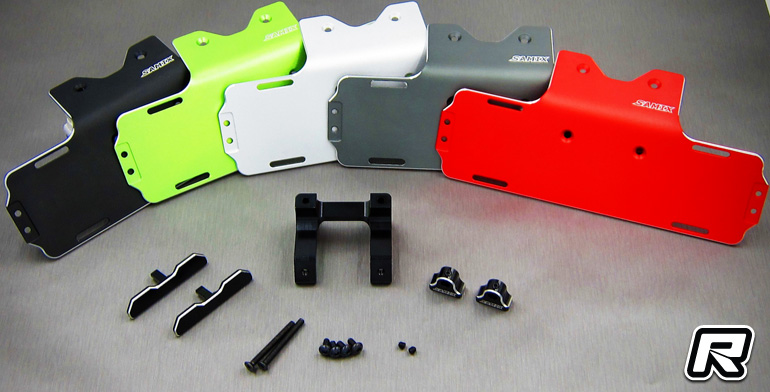 Samix have introduced the forward battery tray kit for the Axial SCX10 vehicle. Machined from aluminium and coming with adjustable battery locators on both the left and the right hand side the tray makes for a more forward biased weight distribution, greatly improving climb performance. The part is designed to attach to the front shock plates, which also leads to a reinforced front shock mounting. Coming in five different colours the tray accept up to 170mm long battery packs.