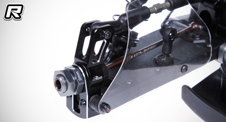 – Machined aluminium 15° C-hubs, steering blocks, uprights, shock towers, one-screw motor holder and centre diff brackets, as well as suspension mounts