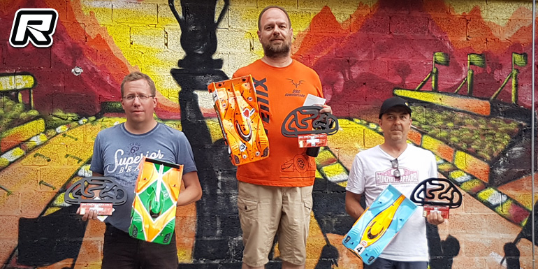The opening 1/8th Electric Stock A-main saw Joachim Grauer and Alan Bendetti making contact in the first corner which cost Joachim dearly. He was able to recover though but he ran out of time to challenge Alan again. Tommy Peter would round out the top 3 so far. Right at the start of A2 Alan took the lead but an issue mid-race meant a DNF for him. Up front Joachim brought home an undefeated win from Tommy Peter and Thomas Burger-Ringer. The third and decisive main then held a fierce battle between Alan and Joachim. Alan jumped into the lead and Joachim tried to follow but the latter made too many mishaps trying to follow Alan and so Bendetti brought home the win and the overall victory from Joachim and Tommy.
