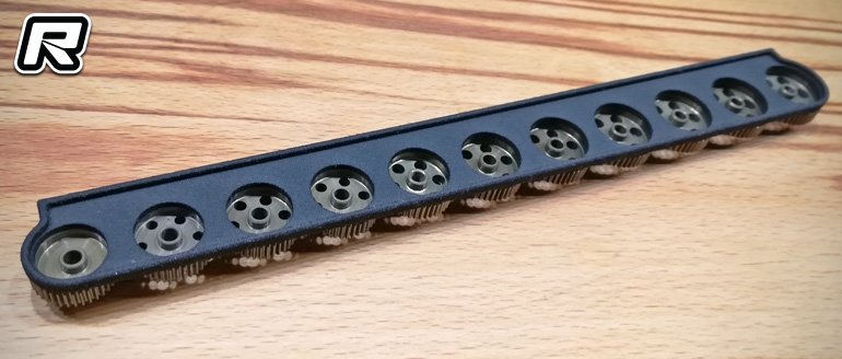 German brand 3DRC has introduced the new 64 pitch pinion caddy. Coming 3-D-printed, the pinion gear holder was designed to hold 38T to 48T 64 pitch pinions with the special design doing away for any additional tools to secure the gears as they simply clip in place. Holes in the backplate allow to easily spot the gear size of pinions with size markings on the front. The carrier is usable with most of today’s 64 pitch pinions and it is available through 3DRC’s Shapeways store or at select model shops.