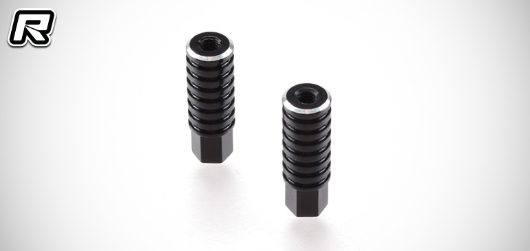 Coming from Revolution Design Racing Products are aluminium battery posts and thumb nuts. Starting with the battery posts, the parts are machined from aircraft-grade 7075-T6 aluminium and they sports RDRP’s new signature cooling fin look. The posts are a direct replacement for the standard parts, they work with the kit’s battery mounting hardware and they are available in blue or black anodising, allowing to add visual impact or create a stealthy all-black look.
