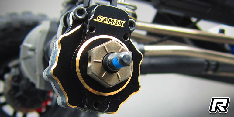 Samix have introduced a set of brass portal axle covers for the Traxxas TRX-4 trail truck. The parts are machined from high-quality brass material and they come black coated and with golden edge details and logos. The covers add 55g of weight per pair and thus greatly improve the climb performance of the vehicle while also making for improved overall drivetrain rigidity. The axle covers are available separately as pairs and also including a set of mock-up brake discs and callipers for added visual impact and scale looks.
