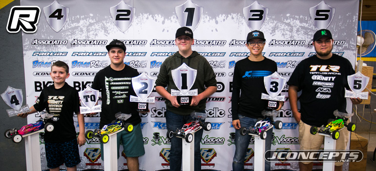 In 2WD Pro Modified, qualifying himself 2nd behind class TQ, Team Associated’s Dustin Evans, was the key for Yokomo’s Max Flurer in the 10-minute A-final. With Dustin leading the way after the start tone, Max was able to pace himself with Dustin until they came upon lapped traffic. As Dustin was jumping through the 5-pack section, he would collide with a car needing to get corner marshaled. This gave Max the lead and from there, the race was history. With his buggy dialed and able to run the pace, Max just controlled the gap as Team Associated’s Daimon Borkowicz positioned himself 2nd and only 1.3 seconds back of Flurer. Dustin was able to recover and get himself to 3rd. Joe Bornhorst would make another appearance at a 10th scale race and was able to finish 4th with his own, personal TLR 22 4.0. TLR’s JR Mitch would take the last spot on the 5-man podium in 5th.
