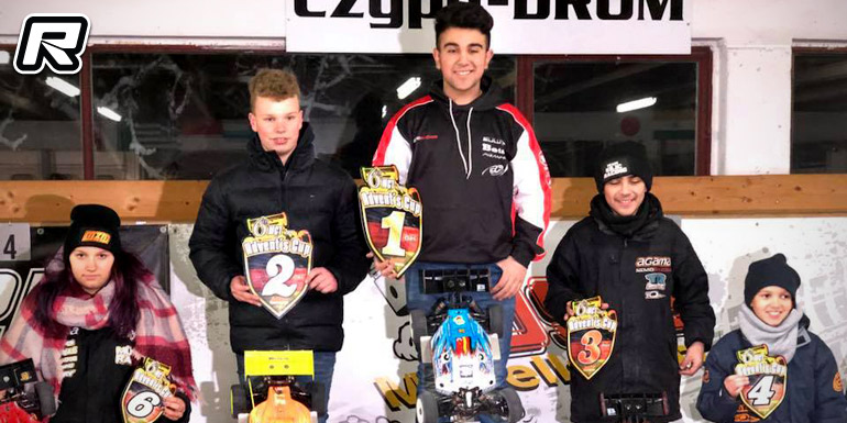 The Czypu-Drom dirt indoor track in Bad Oeyenhausen, Germany played host to the 6th annual Advents Cup this past weekend. The 1/8th E-Buggy class was won by Mugen’s Robert Batlle who came all the way from Spain to take the win from Agama’s Burak Kilic 2nd and free agent driver Jörn Neumann, piloting a Mugen, in 3rd. Over in the Junior finals it was Burak Kilic who took the winning honour from Laurin Czypulowski 2nd and Berkan Kilic 3rd.