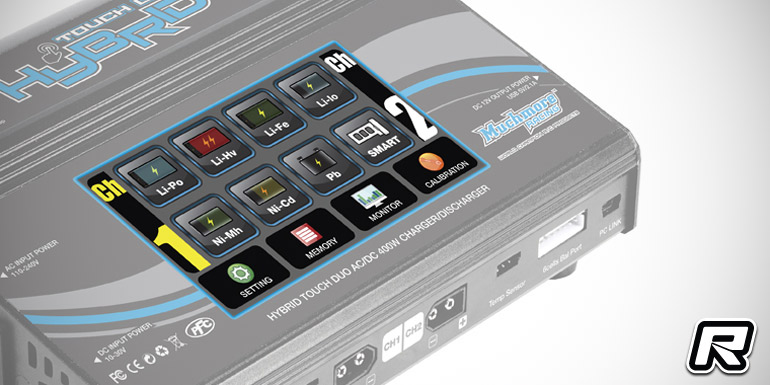 Muchmore have introduced their all-new Hybrid Touch Duo AC/DC charger. The device sports dual 200W power circuits for simultaneously charing battery packs with up to 20A of charge current while the 4.3 inch full colour touch display allows to access the charger’s extensive menu options. An integrated power supply allows to feed optional accessories such as tyre warmers, pit lamps etc. while the USB port powers smartphones, tablets and other devices. The charger is usable with 110 to 240VAC or 10 to 30VDC and it will hit stores very soon.