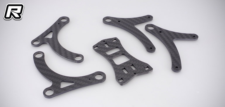 Two new optional parts are available from Capricorn for their LAB F1-02 formula kit. First up is a carbon fibre side link set that improves overall rigidity, precision and performance. The multi-parts set replaces the standard composite links and it is understood to be usable on Capricorn’s 1/12th and 1/10th pan cars also. Also new and made exclusively for the F1-02 is a wide front end kit that increased the car’s front track width which can be helpful in certain track conditions and when running narrow offset front wheels.