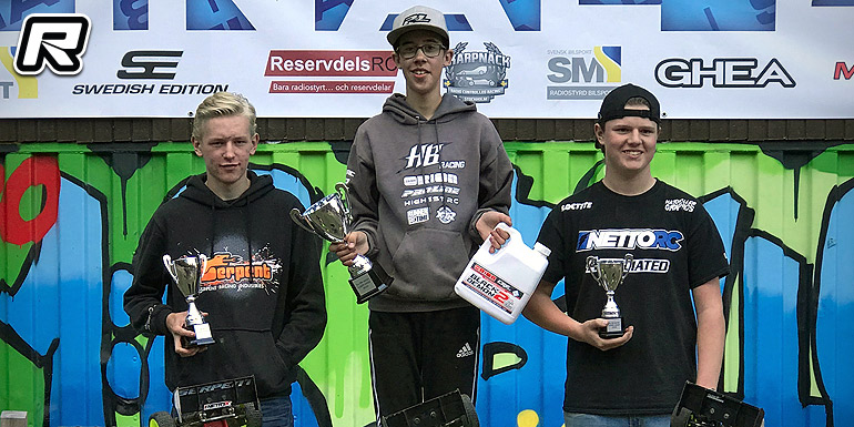The third round of the Swedish Nitro Buggy Nationals was held in Skarpnäck, Stockholm over the weekend. With two wins in the first two rounds in Tomelilla and Gotland, HB Racing’s Hampus Berg was considered the pre-event favourite and with a 2nd place at round 3 he was ultimately able to secure the overall Championship together with the Junior championship. Kyosho’s Jessica Palsson would end the season on the runner-up spot from Serpent’s Pontus Larsson 3rd.