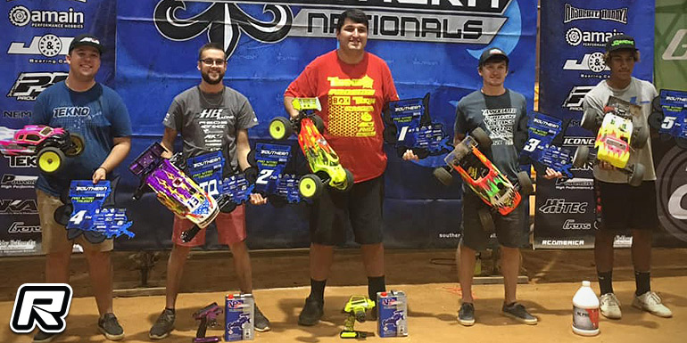 The 2019 Southern Nationals were held in West Monroe, Louisiana this past weekend, attracting 400 entries for the usual mix of nitro and electric 1/8th off-road classes. In the premier Pro Nitro Buggy class it was Tekno RC’s Joe Bornhorst with the overall TQ from HB Racing’s Cole Ogden in 2nd place after the qualifiers. The 45-minute A-main event then saw Cole taking the win some two laps in front of HB Racing’s Spencer Heckert as Joe Bornhorst had to settle for 3rd overall, another 18.5 seconds down. Tyler Hooks and Dillon Caldwell came in 4th and 5th respectively.