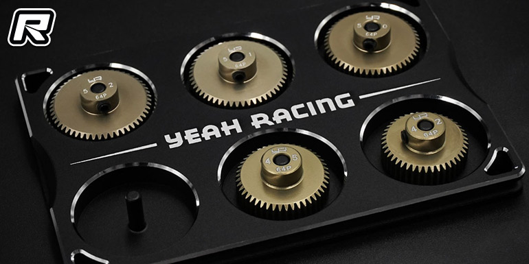 Yeah Racing have introduced their new aluminium pinion gear carrier that holds up to six pinions. The carrier is machined from high-quality aluminium and it comes black anodised for surface protection and looks. Machined silver edge details make the part stand out. The accessory measures 92x63x10mm and it can take 64 pitch gears of up to 60T or 48 pitch gears of up to 45T in size.