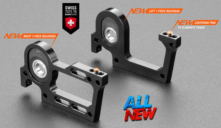 – New one-piece bulkheads achieve maximum durability and eliminate tweak issues after a crash