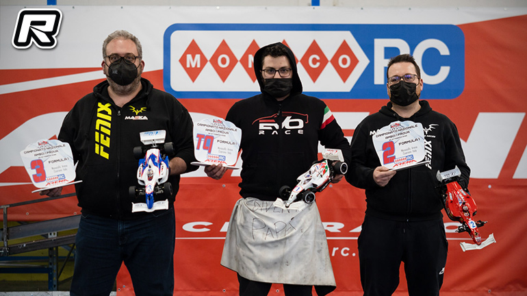 This weekend the first round of the AMSCI National Championship took place on the MonacoRC Arena indoor track. Thanks to the asphalt surface of the MonacoRC Arena it was possible to see consistent performance with excellent grip for both days of competition. The event was open to 5 classes, Touring Stock 13.5 F1, Touring Stock 13.5 F2, Modified Touring, Touring FWD 17.5 and F1 21.5. In the Touring Stock 13.5 F1 class, the poleman Federico Barbieri, following an unfortunate first final, managed to take home the victory followed by the ever faster Filippo Domanin who despite his very young age is getting us used to seeing him always high in the standings. Andera Simari completed the podium.