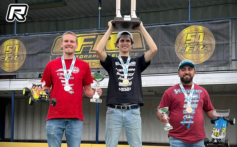 Eight years after winning his first European Championship title in the UK, Schumacher’s Michal Orlowski has regained the title with victory at the 4WD Buggy Euros in the Netherlands today. Having just missed out on his first 2WD title earlier in the week to the reigning 4WD Champion Marcus Kaerup, Orlowski would be the Top Qualifier for 4WD. Topping 2 of the five rounds at the challenge RACO200o astro track, he would start ahead of Team Associated’s Kaerup, fastest in Q1, Sworkz pairing Jöern Neumann, fastest in Q4, & Micha Widmaier with team-mate Daniel Kobbevik fifth ahead of Xray’s Bruno Coelho. In the opening final Orlowski produced a dominant performance to win ahead of the Yokomo of Burak Kilic who had a strong run to come through from P7. In A2, Orlowski came under a bit more pressure for the opening 2-minutes from 2WD Top Qualifier Neumann but a few moments from the German allowed the Polish driver to cruise to the win and the title. Winning A3 from Kilic, Nuemann would secure the runner-up spot with Kilic completing the podium.