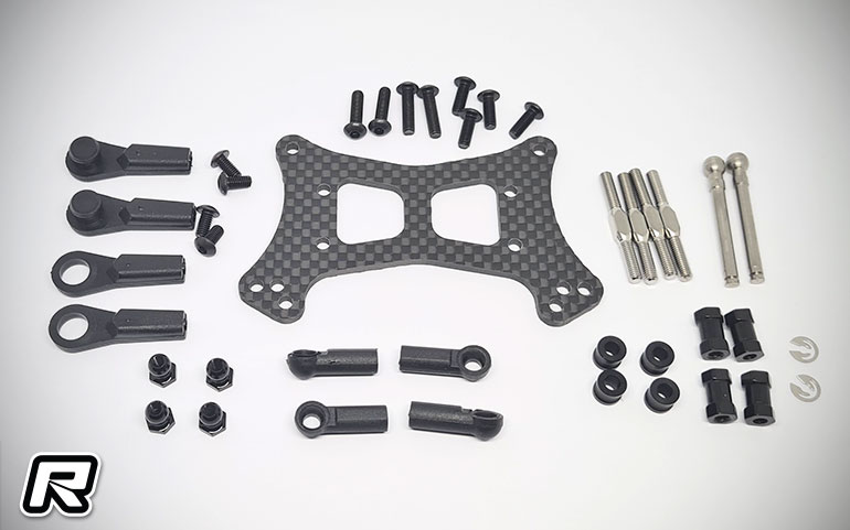 Italy’s Fenix Racing has released a new optional front end for its G56.2 Pro10 chassis. More rigid than the kit standard front end, it offers a more constant and reliable feelings in the high speed turns. The set comes with Gr.5 Titanium turnbuckles and kingpin, and all the necessary hardware.