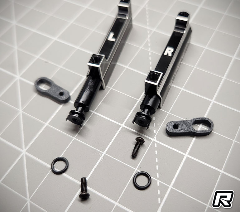 New from 1:12 World Champion manufacturer CRC comes their new aluminium dampers. Intended for the MetriCKs, F-Won, and M-200R kits from the US company they are precision CNC-machined for lightweight performance and tight tolerances. The unit’s tight tolerances mean damper fluid changes are very noticeable. Smooth and fluid with no bind for the ultimate in damping action, they feature an O-ring seal to prevent leaks and come complete with rotor, O-rings small M2 screws (1.3mm drive) and rocker arms. Also, M3 x 5 flat head screws are used for the rear mount hole.