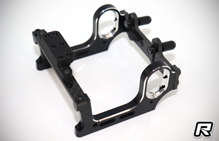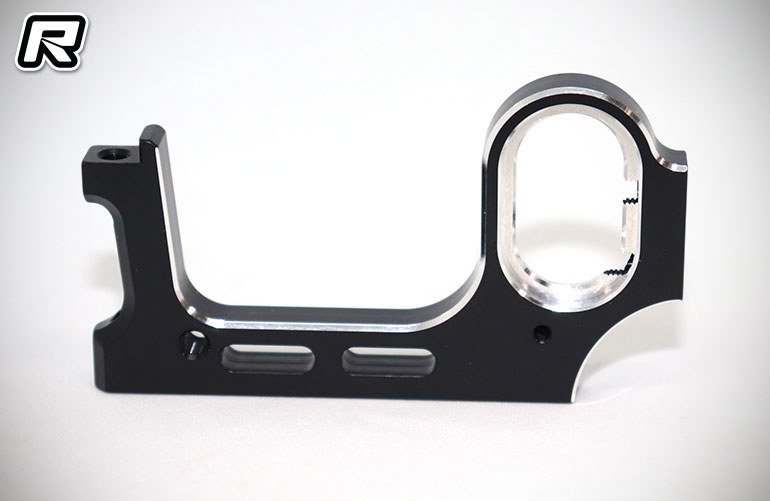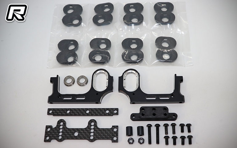 New from Japan’s HiroFactory comes this new brushless motor mount for the Tamiya F103/104 F1 chassis. Made of 7075 aluminium and a carbon plate, a black anodized finish and machined edges create a bold design. The rear carbon brace allows for 5-step adjustment of the rear wing height and high-durability flange bearings (2 included, F1060, made in Japan) are used for shaft support. The vehicle height can be adjusted in 15 steps of 0.5mm increments using the dedicated height adapter. An optional height adapter for 1/4 inch shafts is also available. The damper plate mount is designed for easy customisation and expansion. While only one mounting point is provided, a threaded hole for attaching a cooling fan is included.