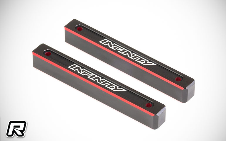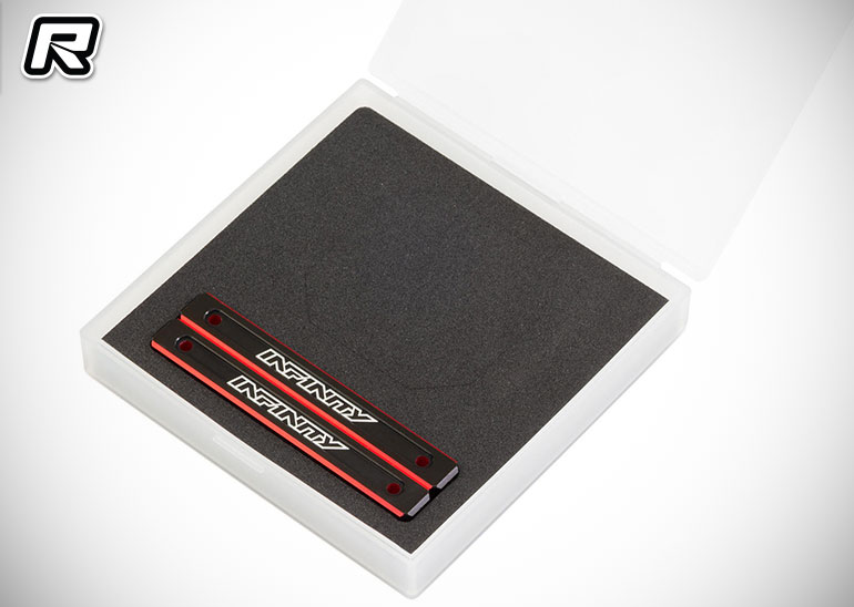 Multiple Nitro Onroad World Champion chassis manufacturer Infinity has added new 10mm Droop Blocks to its offering of set-up tools. For use with 10mm Droop Gauge and finished in the Japanese company’s trademark Black & Red colours, the blocks can also be used with other gauges requiring a 10mm thick droop block and is an essential tool for suspension alignment settings.