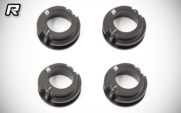 Infinity has released two new optional Eccentric Bearing Holders for its new IF14 Speciale 1:10 Electric Touring Car.  Precisely machined from high-rigidity duralumin, they are offered in 0.25mm and 0.75mm.  Expand the offset from the standard 0.5mm to 0.75mm, this enables higher differential/spool axle positioning enhancing rotation characteristics for sharper cornering response.  Reducing offset from the standard 0.5mm to 0.25mm, this allowing lower differential/spool axle positioning improving grip and delivering sharper traction response.